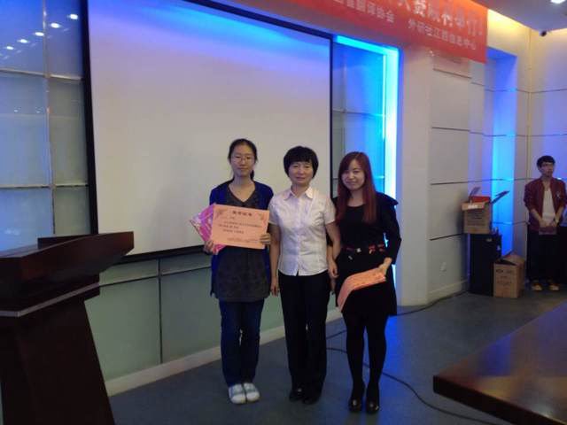 蒋平教授介绍了比赛的命题规则、比赛流程和奖项的设置,公布了本次大赛的获奖选手名单并向获奖选手们表示衷心的祝贺。赣南师院外语学院院长钟平教授对本次比赛的试卷难点、阅卷工作及参赛选手的答题情况进行了说明和分析,并公布了本次大赛的阅卷程序及评分机制。最后,获奖的选手们依次上台领奖,整个会场洋溢着愉悦的气氛。至此,本届翻译大赛取得了圆满成功!