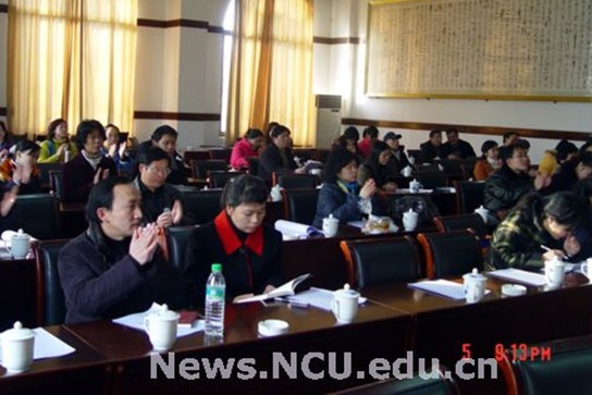 本次年会专门安排了论文评奖活动,参选论文达33篇,选出了一、二、三等奖若干。为进一步推动我省的翻译学术研究,6日上午协会的三位副会长南昌大学蒋平教授、江西财经大学司显柱教授、江西师范大学李发根教授分别作了精彩的翻译学术报告。蒋平教授从宏观的视角探讨了“现代翻译的经济转向”,司显柱教授和李发根教授则从专业的角度分别探讨了“从功能语言学的成篇功能论语篇翻译对等” 和“功能与翻译”。下午大会分小组进行学术讨论,气氛非常活跃,彼此产生了不少有价值的学术思想火花。