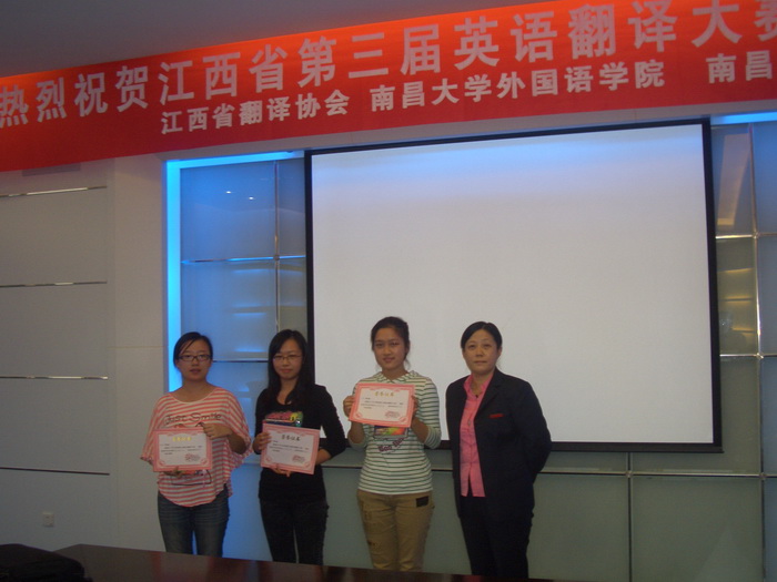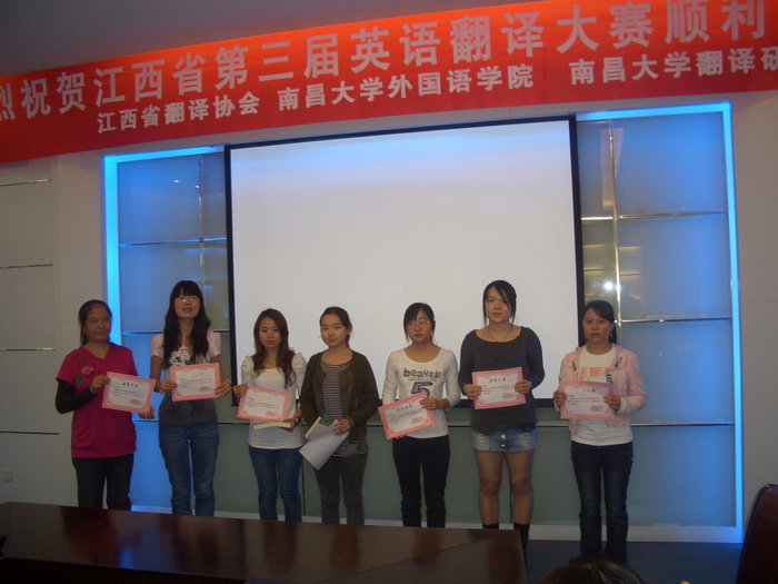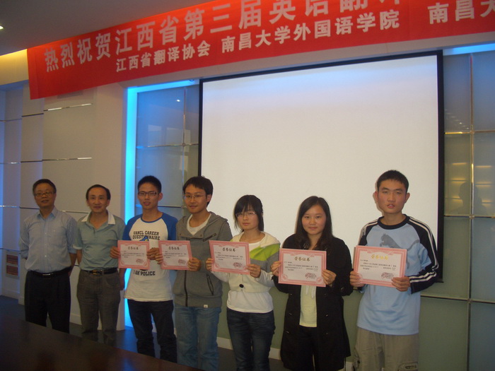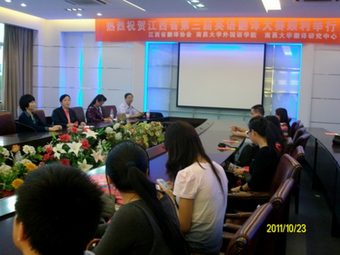 2011年10月23日,由江西省翻译协会主办、南昌大学外国语学院和南昌大学翻译研究中心承办的江西省第三届大学生英语翻译大赛决赛在南昌大学前湖校区举行。